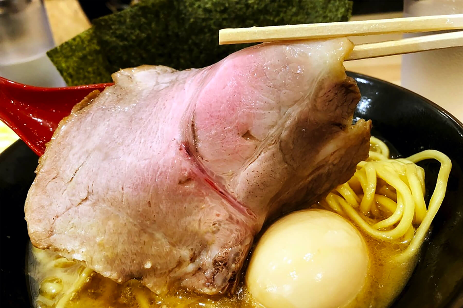 大きなレアめのチャーシューがドーンと1枚!大きいけど、薄くてやわらかなので、ペロリといける。