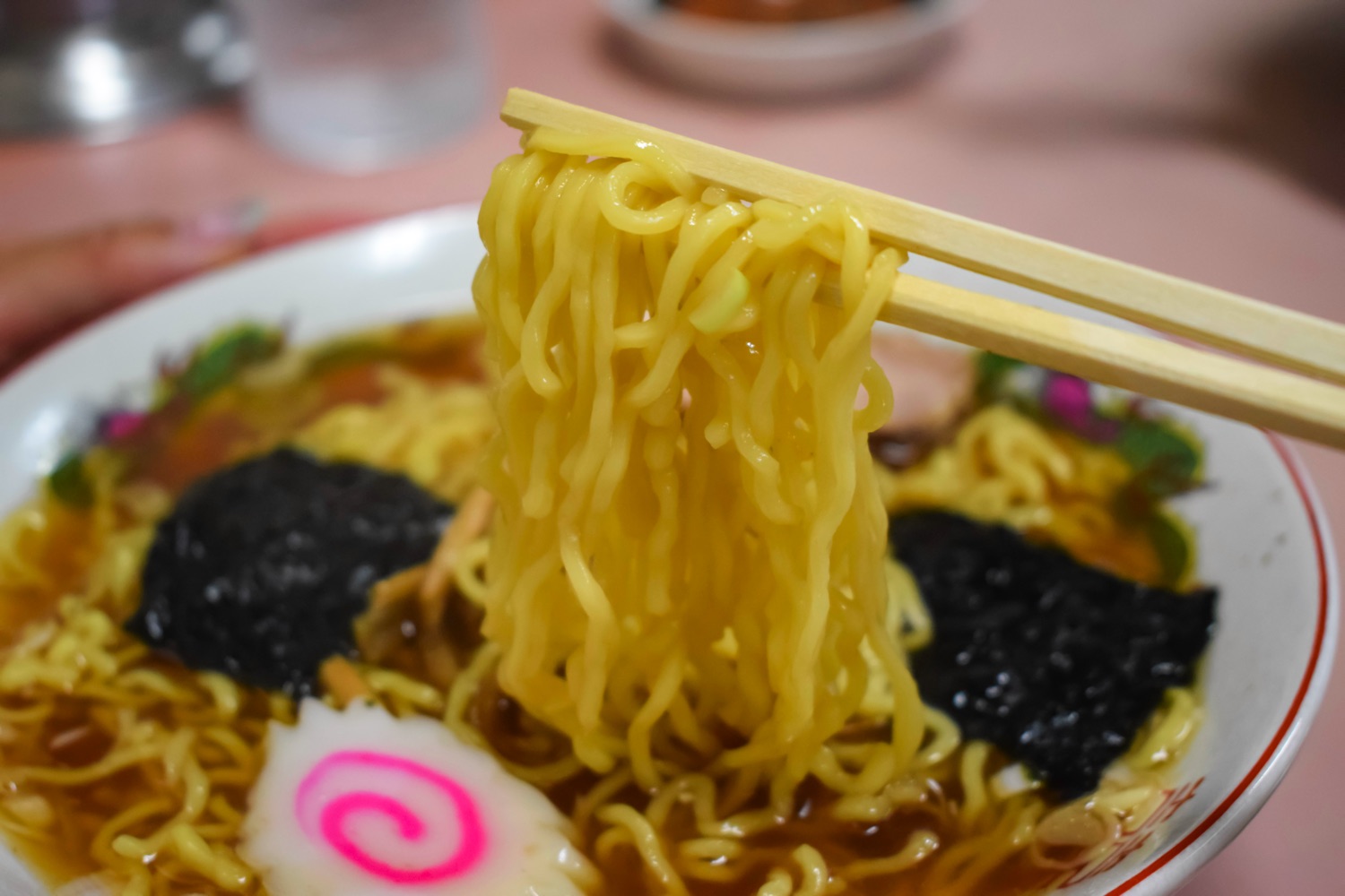 つるつると喉越しがいい細めのちぢれ麺がすっきりとした醤油スープによく絡む。