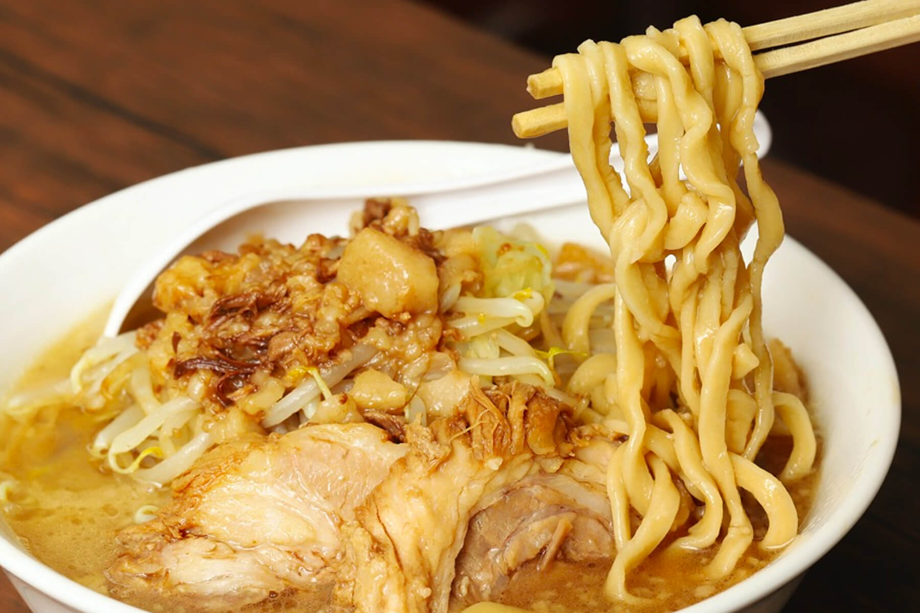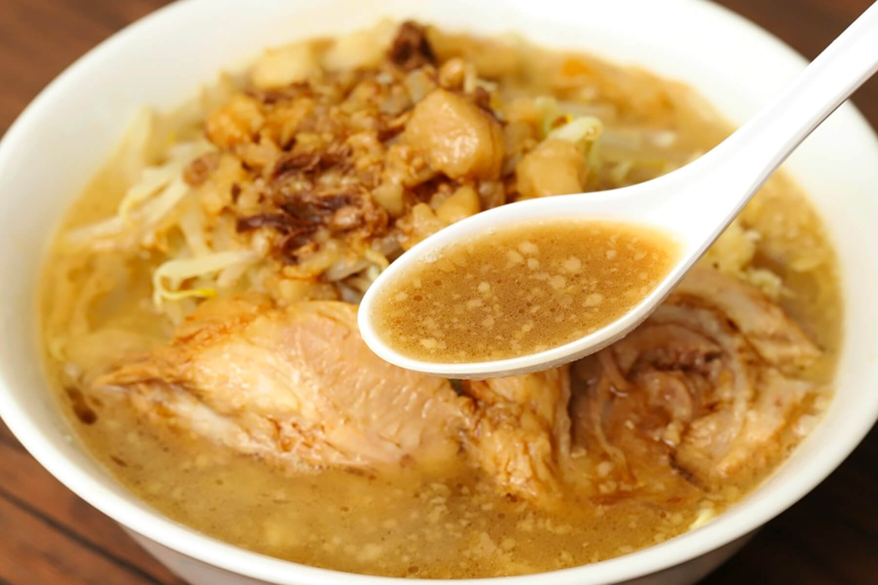 二郎系スープは味が濃すぎず、刻み生ニンニク×背アブラがガツンとくる美味しさで、女子ウケもよさそうだ。