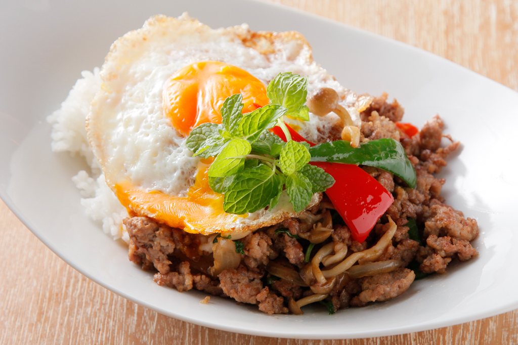 休日のお昼に行ったのですが、予約でいっぱいだったので、テイクアウトにし、テラスで食事をしました。ガパオライスが美味しかったです!