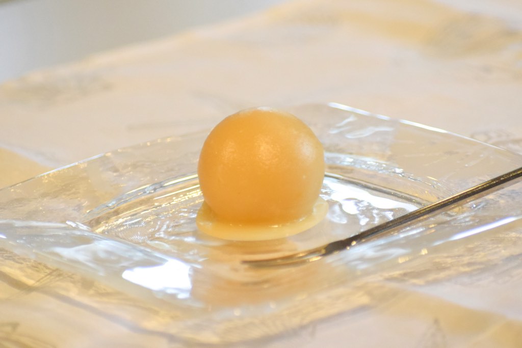 熟練の職人が手作業で作る繊細な羊羹の状態が「てんぷら」という技により、美しい「まる」になる。人の手がなければ絶対に生み出すことができない、変わらないから愛され続ける、“まるい”和菓子。