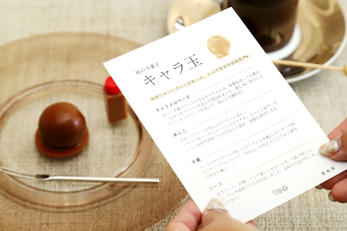 色づく葉っぱを愛でる昼下がり、頬を撫でる風がひんやり感じる夕暮れどきの、忙しない日常の中でふと思いを馳せるほんの僅かな心の余裕…。ホエーのこと、チーズのおもしろさ、新しい美味しさ。長い歴史の中で育まれた伝統と革新の中で、一つのお菓子をとりまくさまざまな物語に心を寄せて。キャラ玉と共に、より豊かで濃密な秋のひと時をぜひ。