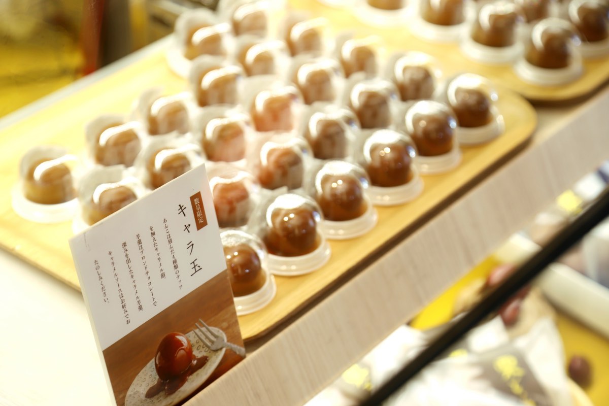 自然豊かな場所で丁寧につくられた清里ミルクプラントのチーズ。そんなチーズの固まらなかった部分がホエー。栄養価が高くて美味しいのに廃棄されてしまうなんてもったいない!と、試行錯誤しながらホエーから手づくりしたブラウンチーズの美味しいことと言ったら!そのままでも美味しいブラウンチーズを餡にも羊羹にもいれ、キャラメル×チーズの化学変化を楽しめるのが、このキャラ玉なのだ。