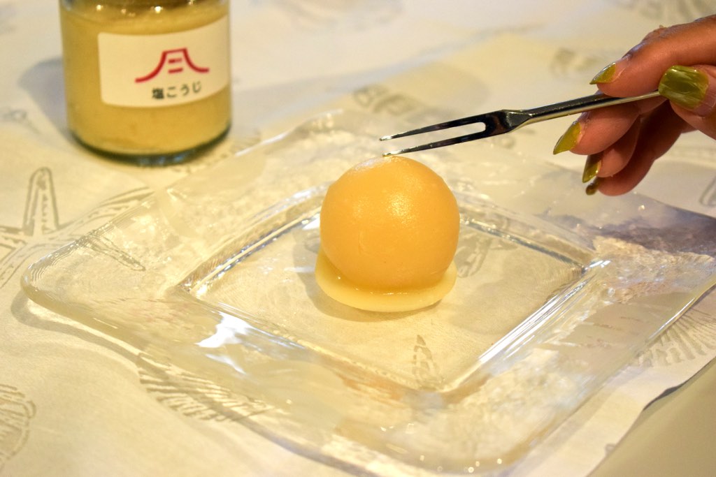 皮ごとシロップ漬けしたレモン、レモンだけを丸ごと潰したソース、レモンだけのストレート果汁。レモンづくしの味わい+塩こうじ…甘みと酸味、苦みの絶妙なトライアングルこそが、この檸檬玉の醍醐味だ。