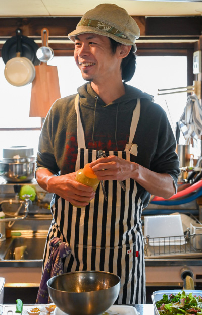 山梨出身のハチドリヤこと馬場勲さん。都内でイタリアンやアメリカンなど世界各国の料理を15年ほど学んだのち、鎌倉市でエスニック系料理メインの店舗を開業。2018年の帰郷以来、ハチドリヤとして現在のスタイルで活動している。