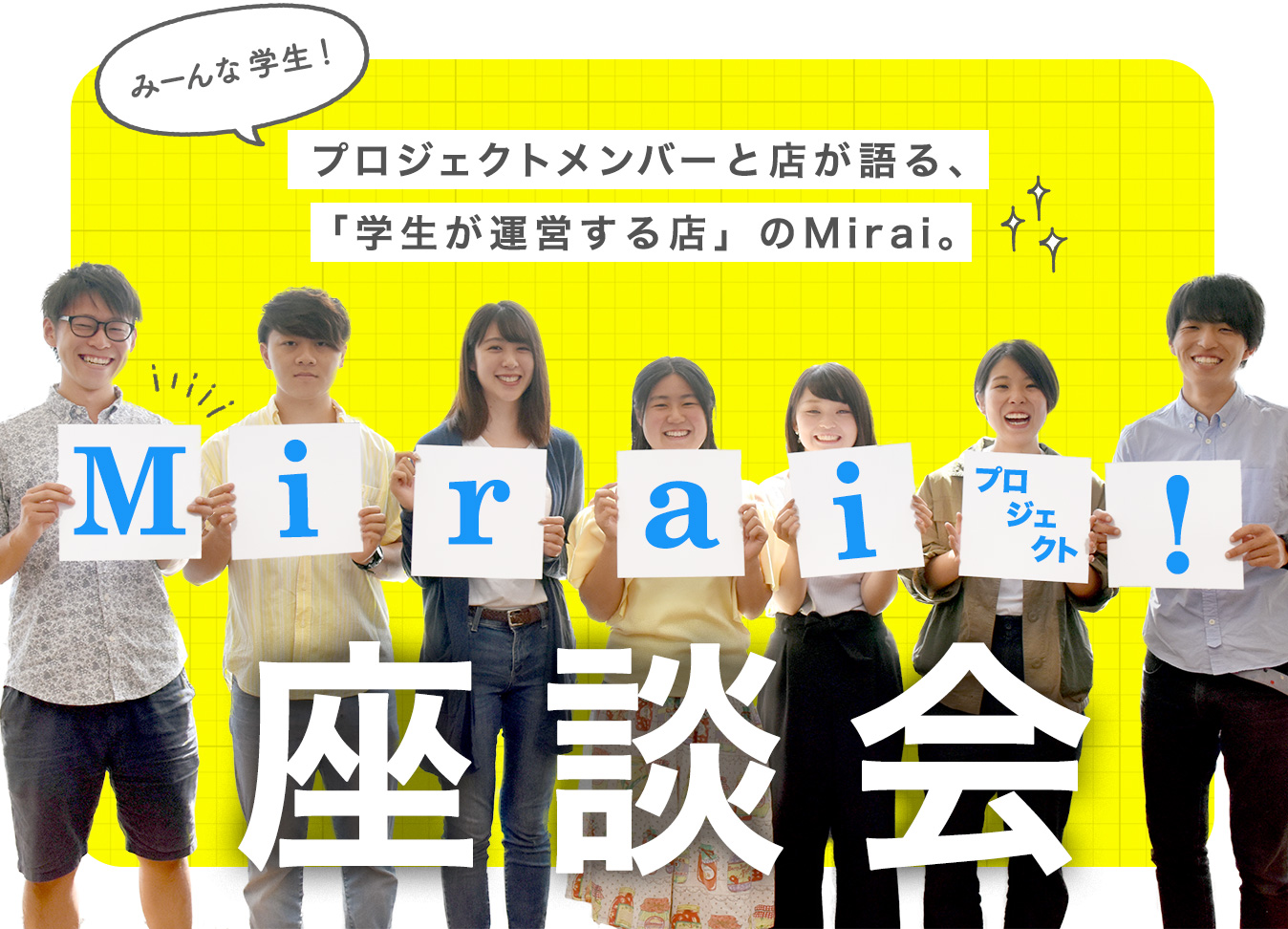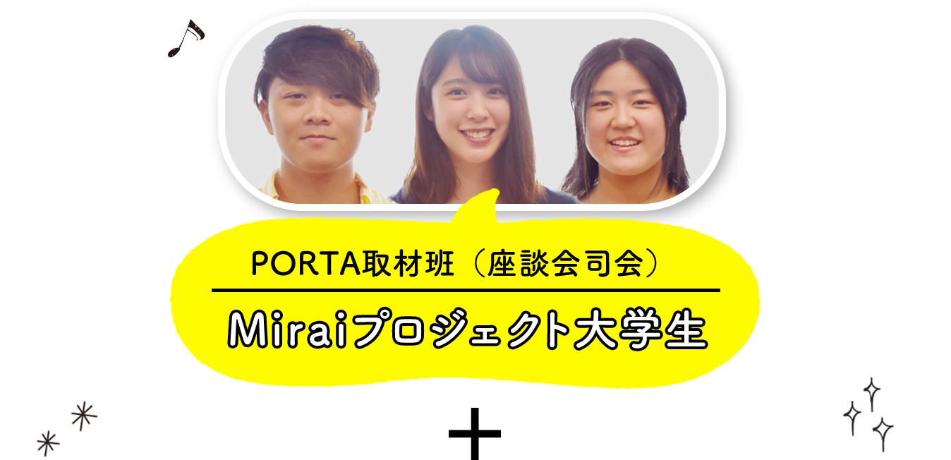 某日PORTA内にて、山梨にある「学生が運営するお店」のオーナーやメンバーに集まっていただき、座談会を開催。学生と店経営の二足のわらじを履き、全力投球するその熱い思いや実際のエピソード、これからの夢などに、3人のMiraiプロジェクトメンバーが同じ学生の目線でうかがいました。様々な思いと意見が交差する、エネルギー溢れる楽しいひと時となりました。