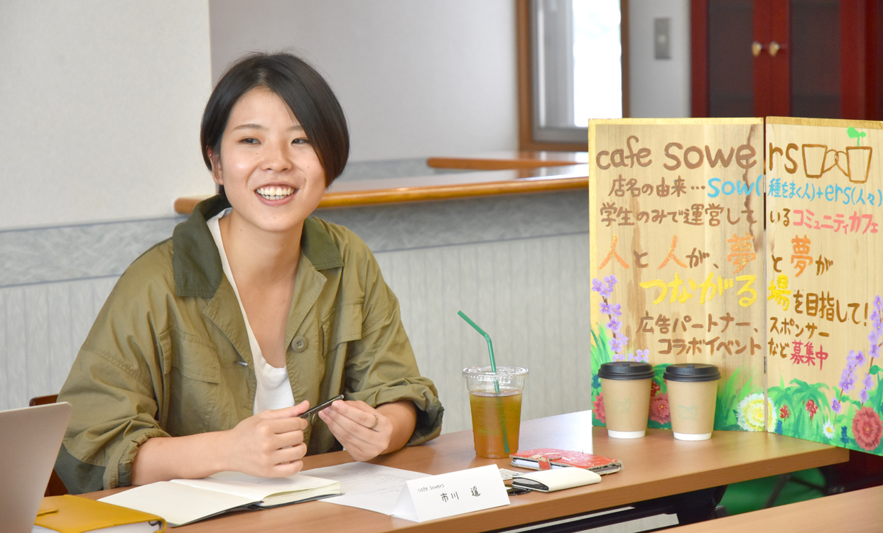 カフェを始めるまでは、地域の人と関わることや同じ学生でも学科が違うとほとんど面識がなかったから、すっごく刺激的です!(笑)