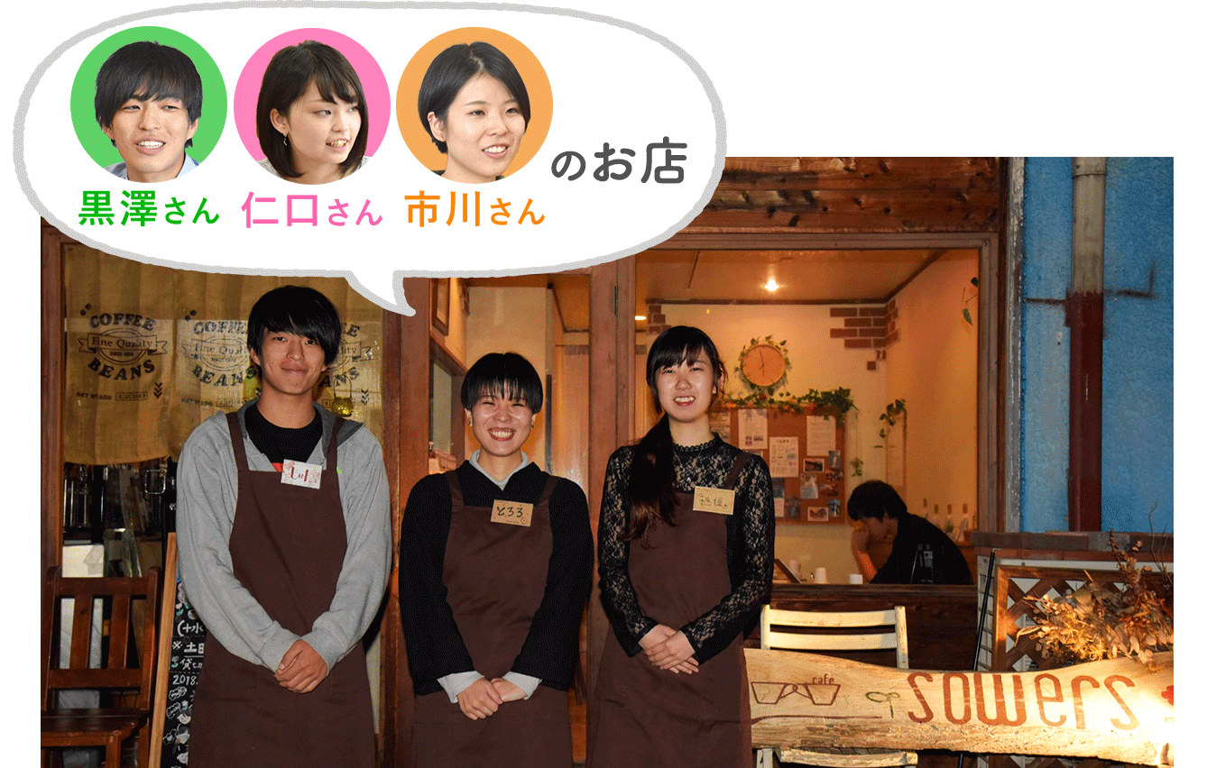 ソワーズは僕の体験から。都留で下宿するようになって、初めて地域の人達と交流する機会ができました。それまでの3年間は学生としかいなかったから、「大人」と接することが新鮮でいろいろ刺激を受け、今までの3年間もったいなかったと思いました。もっと若いうちから、地域に溶け込める場があればいいのにと、カフェを思いついたんです。