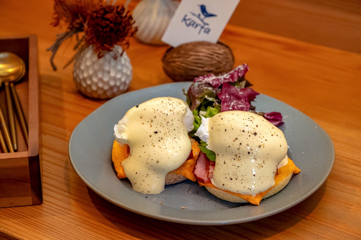 この夏新たに仲間入りしたランチメニュー♪自家製のカリっふわっイングリッシュマフィンに厚切りベーコン・アボカド・ポーチドエッグを乗せ、エスプーマで空気をたっぷり含ませた軽やかな魅惑のオランデーズソースをかけた感動の一品。リッチな濃厚さながら重すぎず、また食べたい!と思わずにはいられない。