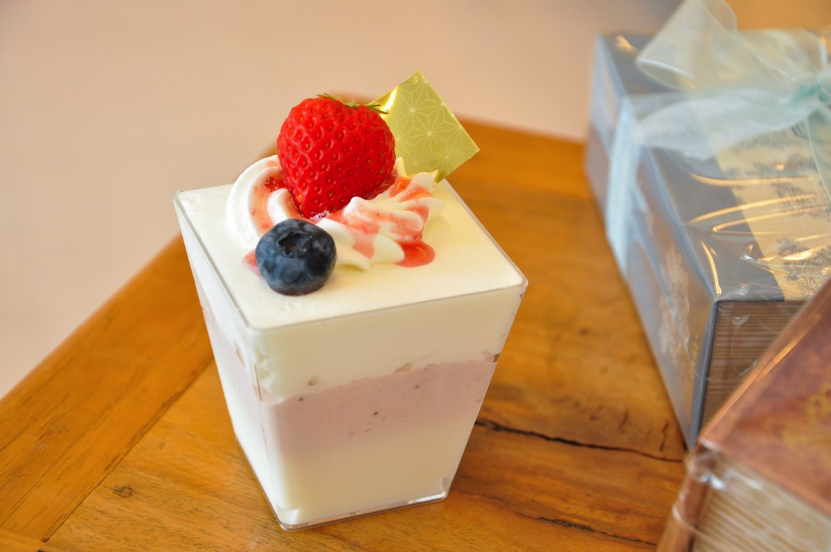 人気のクレープで使用している生クリーム、いちご杏仁といちごムースの3層でできている「イチゴ杏仁」。さっぱりとした味わいとなめらかな舌触りは、見た目の可愛さプラスちょっと上品。午後のティータイムにイチ押しの一品。