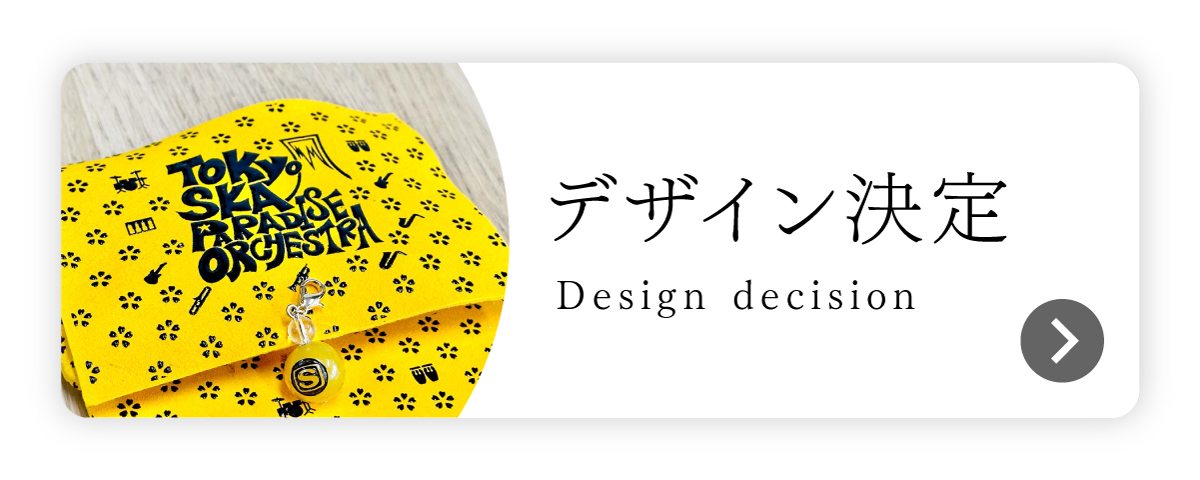 「35周年の文字もいれよう」「色のバリエーション欲しいよね」「この色はスカパラっぽいんじゃない?」「この形がいいなあ」「これ、俺も欲しい!!」などと、盛り上がる面々。9人もいれば全員の意見をまとめるのは大変…!?と思いきや、そこはさすがの団結力!アッという間にデザインが決まっていき、あとは染色・裁断・柄付け・縫製仕上げ…と工程を重ねていくのみだ。