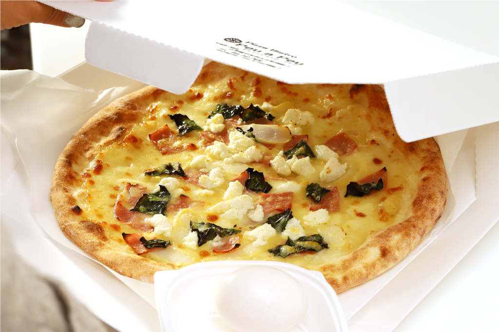 看板のピッツァの中でも人気は、モッツァレラとリコッタチーズがあっさりとした口当たりの「ウォーバエリコッタ」!ホワイトアスパラのシャキシャキ食感がアクセント。また、ボローニャソーセージの繊細な味わいがチーズの旨味とコクと合わさり、美味しさアップ。温泉卵がまるでソースのように絡み、まろやかな味わいに。
