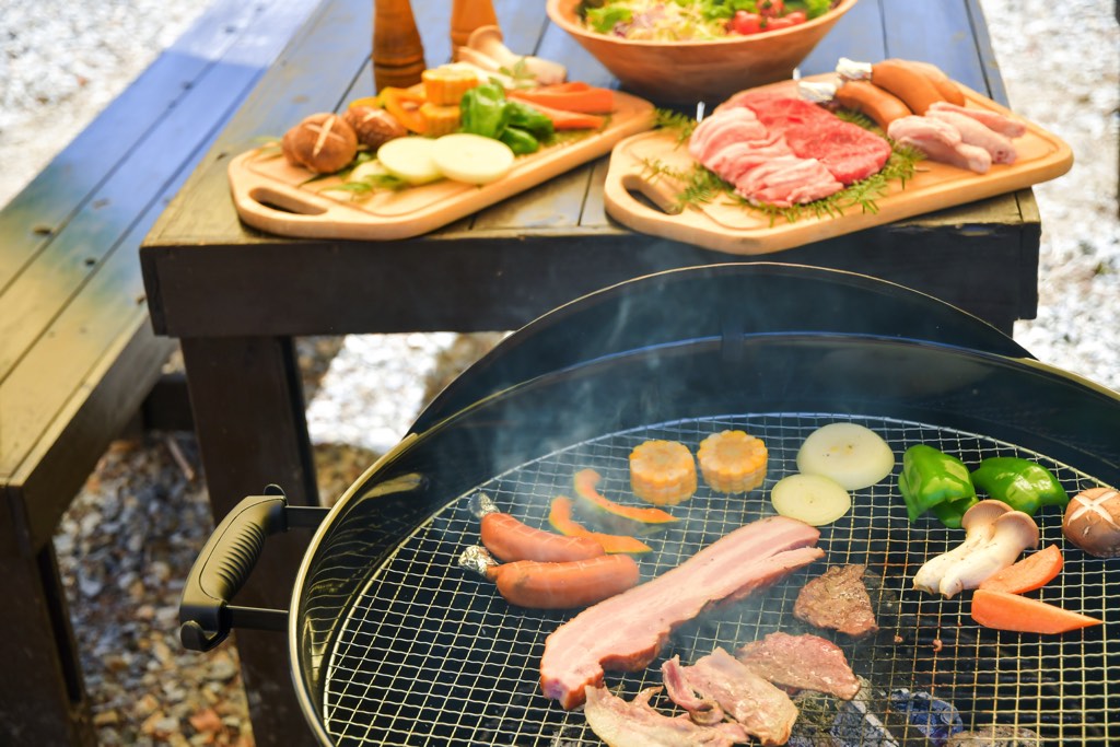 BBQでは、1日1組限定の「Grill BBQ」や宿泊者向けの「サンセットBBQ」などがある中で、手軽に楽しめるのが「アウトドアBBQ」。3月中旬頃から11月上旬頃まで利用でき、テントやグリルなど必要なキャンプギアがレンタルできちゃう!