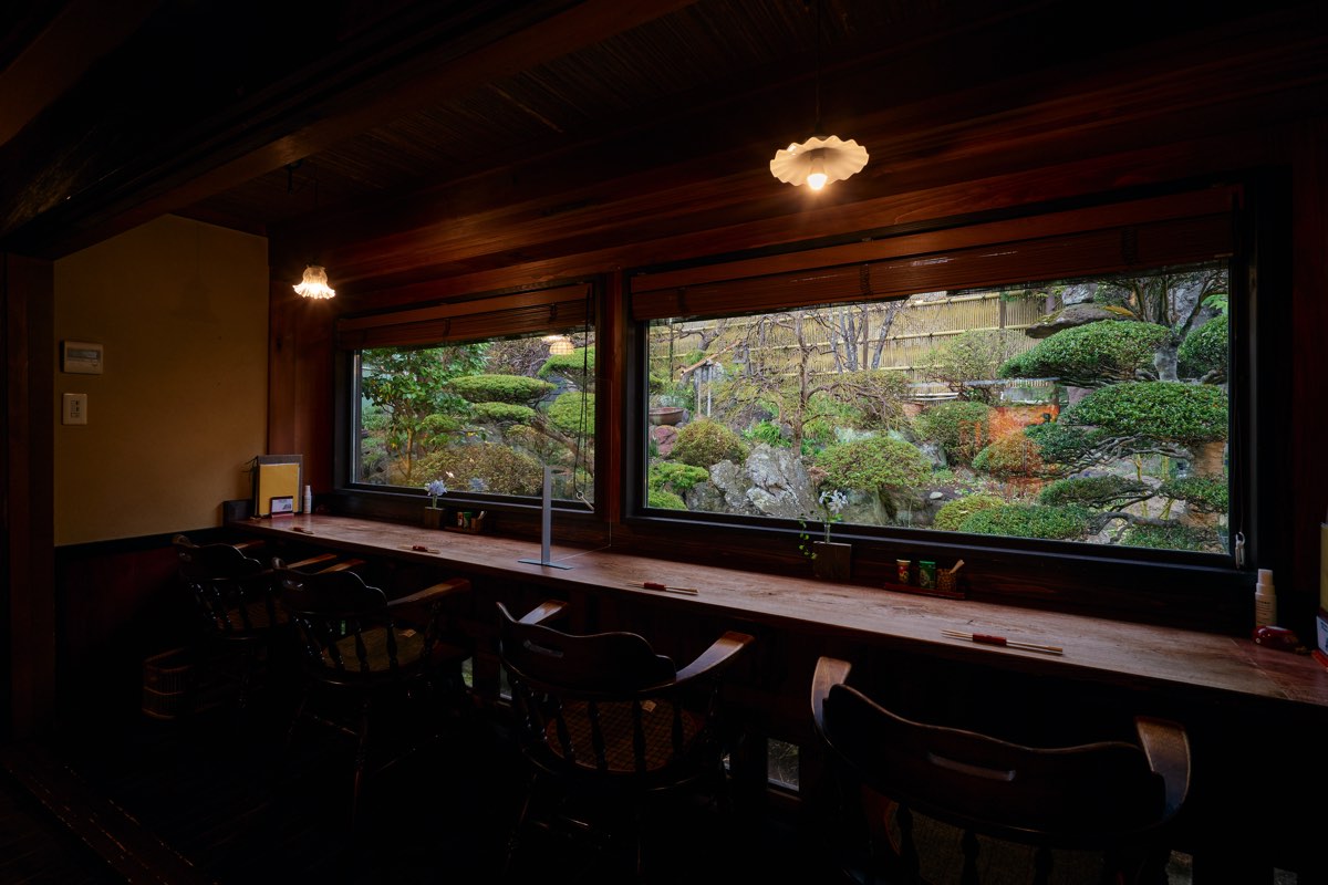 手入れの行き届いた美しい日本庭園を眺められるカウンター席や、落ち着いてくつろげるテーブル席などを備え、歴史を感じさせるアンティークなおしゃれ古民家で、熟成うなぎを堪能。