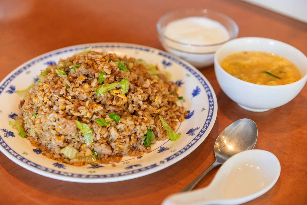 塩コショウに醤油というシンプルな味つけだが、ひと口食べればプロの技が光る秘策にうなる。中華専用の特製コンロで、強火で短時間にパラパラに仕上げれば、最高峰チャーハンの出来上がり。