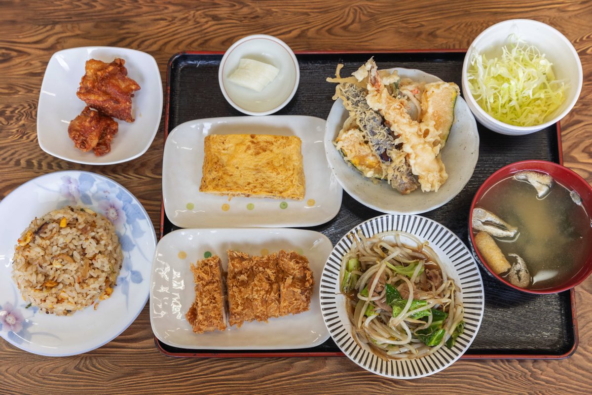 お惣菜すべて1皿100円で、バイキングのように好きなものを組み合わせてオリジナル定食が作れるという、おもしろいランチシステム。このご時世に、てんぷら盛り合わせや出汁巻き卵、チキンカツ、肉じゃが、チャーハンなどなど、ぜーんぶ100円とは!!
