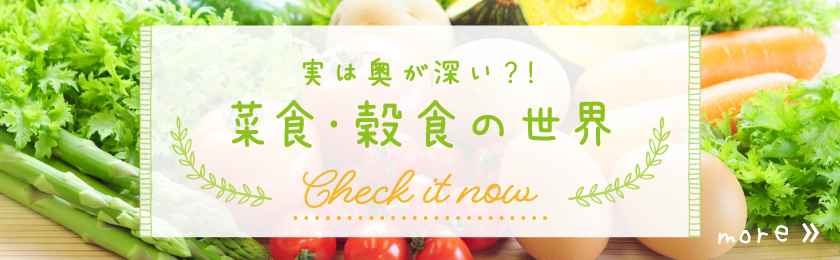 ベジタリアンの一種でもある穀物菜食。マクロビ料理にも通じ、宗教や思想的理由だけでなく、最近は健康や美容、セルフメンテナンスの面から取り入れる人も多い。