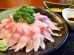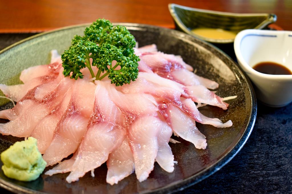 忍野八海のきれいな水で育った虹ますや鯉を池から直接取って調理。鯉のあらいは酢味噌で食べるのが一般的だが、身が引き締まり新鮮で臭みがないので、ぜひわさび醤油で味わってほしい。