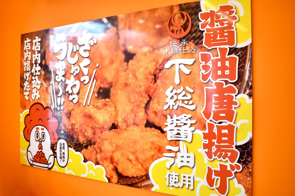 食べ応えのある唐揚げのうまさの秘密は、丁寧な仕込みにあり。高級醤油“下総醤油”をぜいたくに使い、にんにくと合わせ一日じっくり漬け込むことで、外はカリッと、中はジューシーな唐揚げに仕上がる。