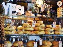 ベーグルは種類豊富で、店内ではチキンやクリームチーズをサンドしたベーグルもいただける。