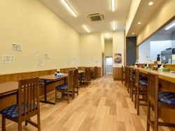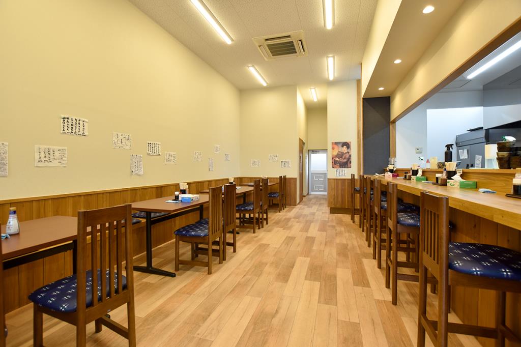 店内は清潔感あふれる落ち着いた雰囲気で、カウンター席とテーブル席が用意されている。