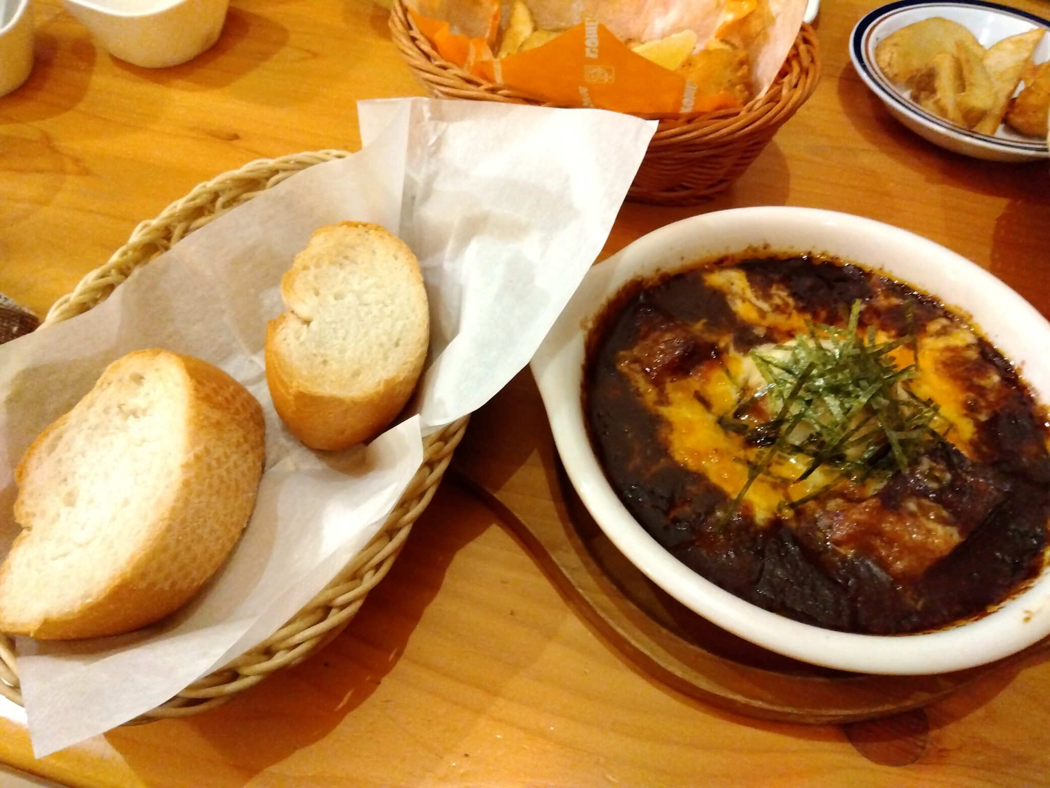 寒くなり、温かいものが恋しくなります。ビーフシチューを頂きました。真ん中にポテサラが入っていました。チーズがトッピングされ、オニオングラタンスープのビーフシチュー版という印象。パンとも合いました。お肉は噛み応えあり。