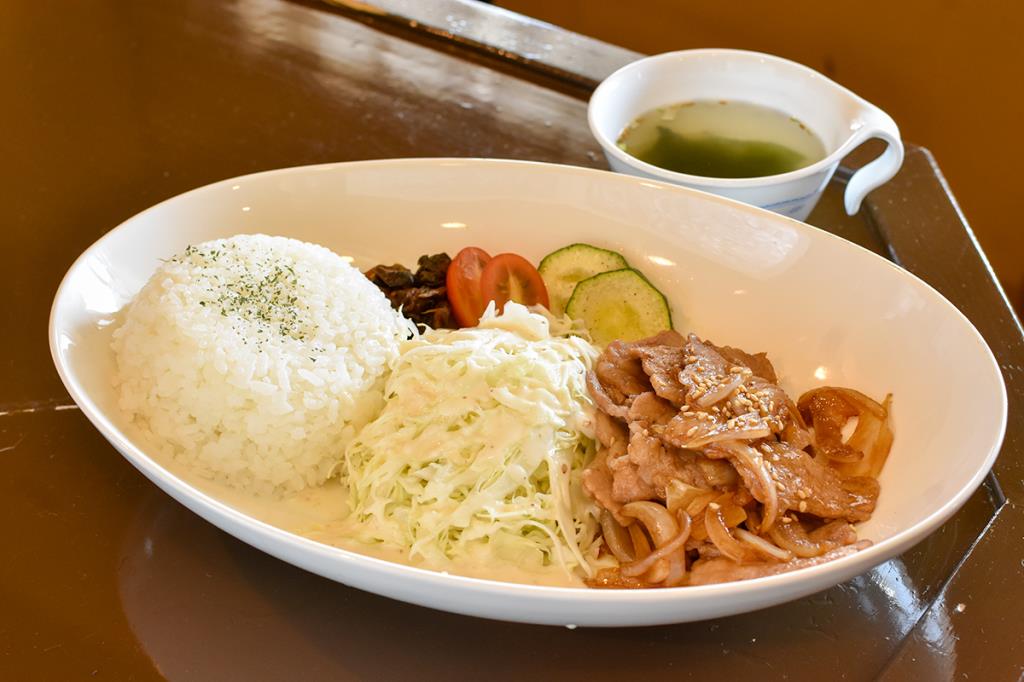 ランチのしょうが焼きプレートはワンプレートで提供してくれる満足度の高いメニュー。