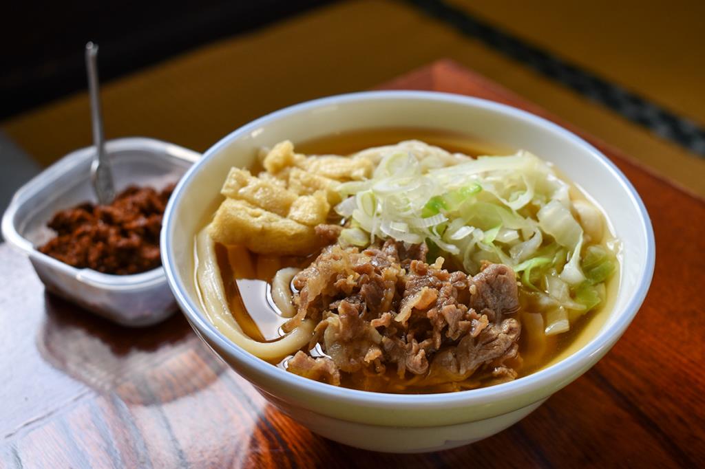 醤油と味噌ベースのスープ、もちもちとした自家製の手打ちうどんを味わうことができる。焼肉とお酒を楽しんだ後のシメに吉田のうどんはいかが?もちろんうどんだけのご利用もOK♪