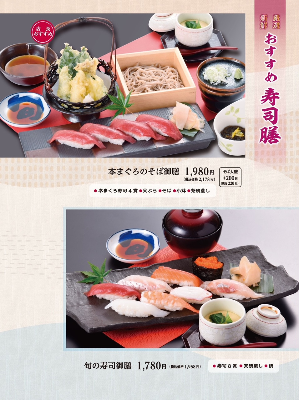 主なメニュー ・本まぐろのそば御膳 2,618円
