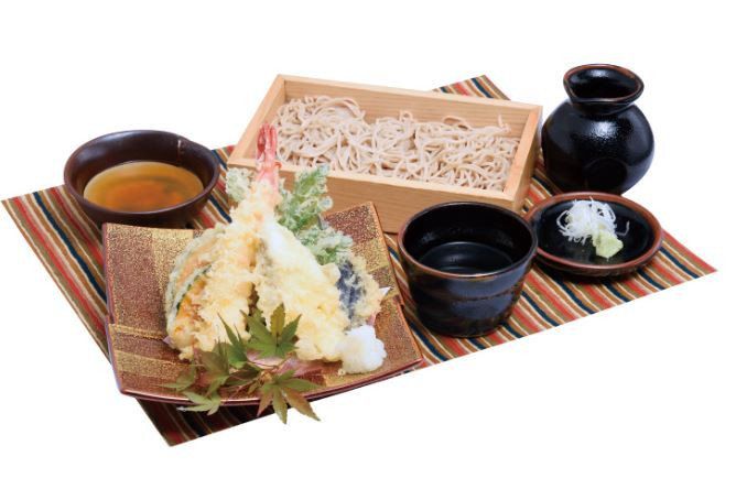 厳選そば粉使用 香りとのどごしのいい味わいをご堪能ください ◎大海老海鮮天ざるそば………1,738円 板そば、天ぷら(大海老、旬の魚) ※そば大盛………+165円 ◎辛み大根のおろし...