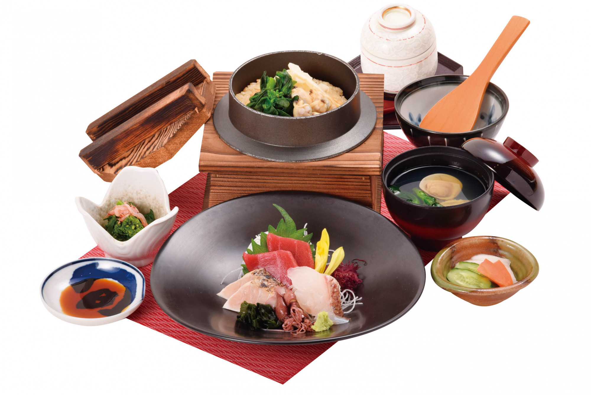 新鮮な刺身盛り合わせに、あつあつ釜めしはお好きなモノが選べます。