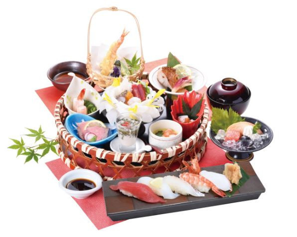 天ぷらやおそばもついてバラエティ豊かな味わいをお手頃価格でお楽しみください ◎楽御膳………1,958円 寿司5貫、天ぷら、小そば、茶碗蒸し 板そば………+165円 ◎花かご板そば御膳…... -
