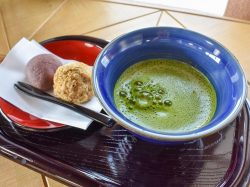 普段使いのお茶うけから弔事用まで幅広く利用でき、店内では富士山を眺めながら抹茶と一緒に優雅なひとときも堪能できる。