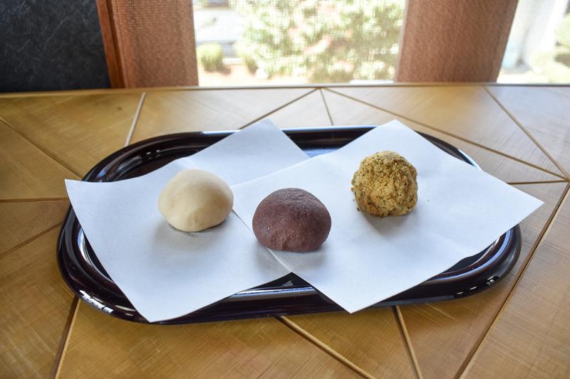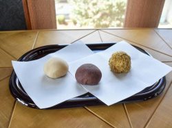 主なメニュー ・大納言・きなこ・白花豆・手びき黒ごま 各1個238円