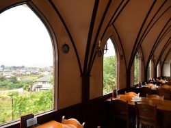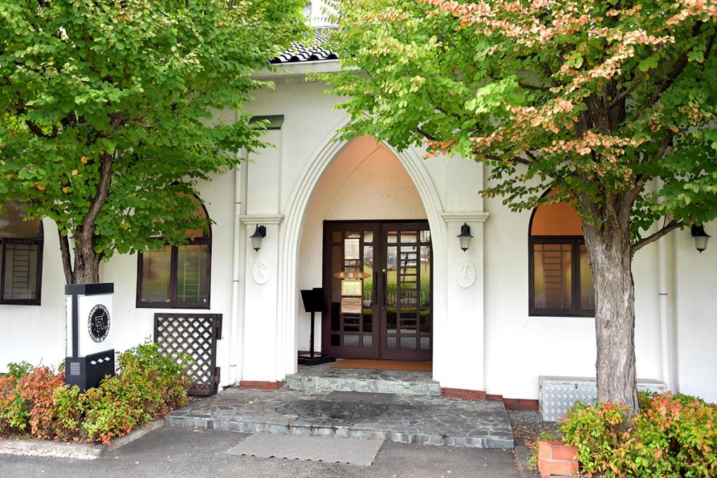 勝沼のぶどう畑を見渡す丘の上に佇む、アルガ葡萄園直営レストラン。