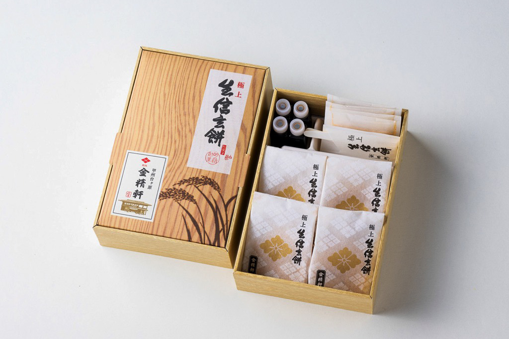 ・極上生信玄餅 4個入…1,080円 ・ほくときらり…1,620円 ・水信玄餅(夏期限定)…540円 ・よんぱち団子 3本入…280円 ・大吟醸粕てら…1,944円 ※すべて税込 |
