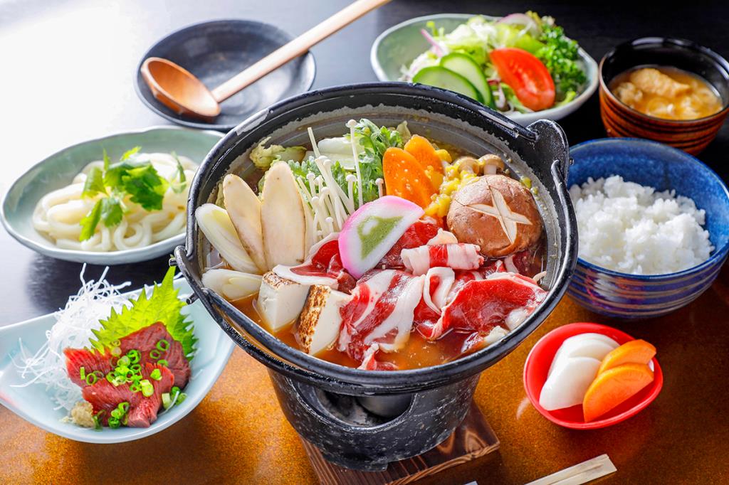 築約150年経つ古民家の趣ある空間で、山梨の郷土料理が楽しめる「甲州郷土料理 わらじ」。ほうとう…