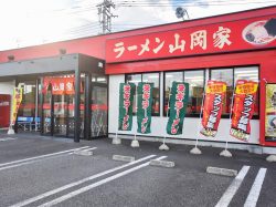 甲斐市富竹新田、国道20号沿いにある「ラーメン山岡家 山梨甲斐店」。