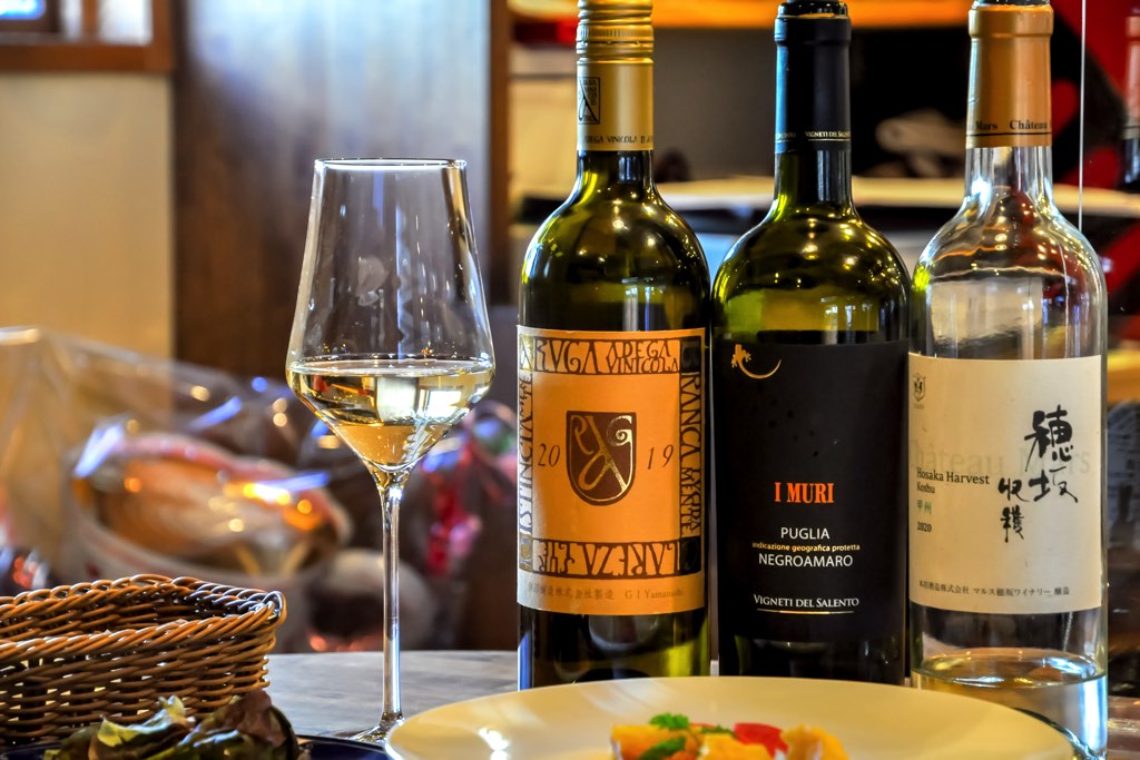 主役の山梨県産のワインは厳選したワイナリーのワインを提供。ワインのお供に県産の野菜を中心とした食材を使用したイタリア料理を、気軽に楽しめるのが嬉しい!