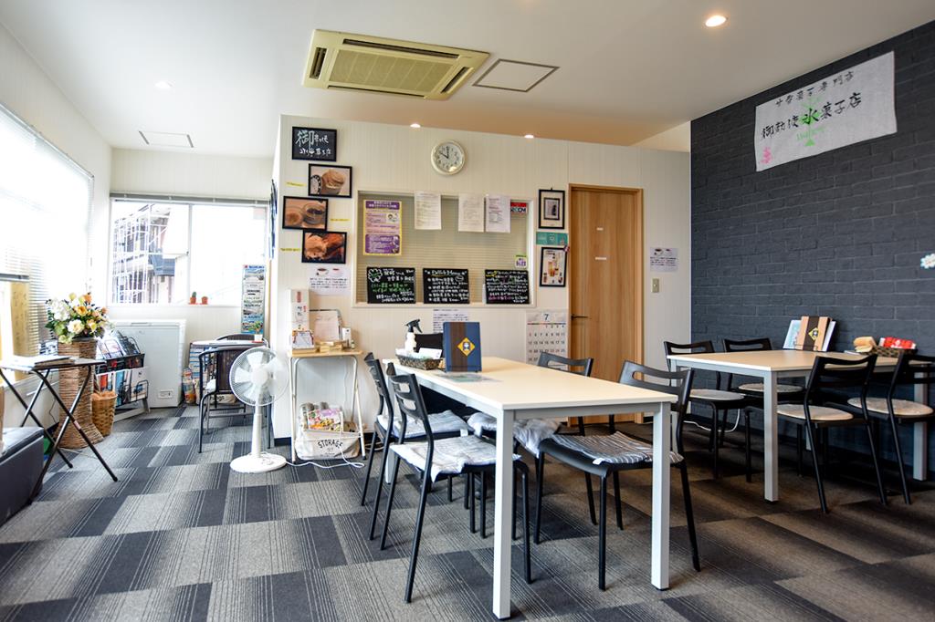 看板商品の”甘雪菓子”は材料と製法をとことん研究し作り上げたここでしか食べられない味。−50度で急速冷凍する甘雪菓子はまるで雪のようにすっと溶ける口当たりにきっと驚くはず。
