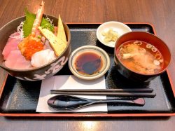 水産加工卸会社が運営しているだけあって鮮度の良い海鮮丼が楽しめる。特にマグロに関しては漁獲直後に-50℃で急速冷凍され焼津から直送される為、他では楽しめない鮮度を保っている。