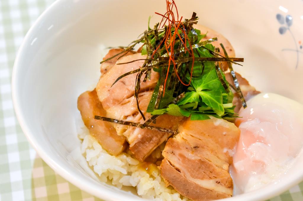 人気NO1の櫛形山丼は、柔らかく煮込んだ桃源ポークの角煮を乗せたボリューム満点の丼。地元産フルーツピューレを使ったフル唐揚げは、サクサクジューシー!