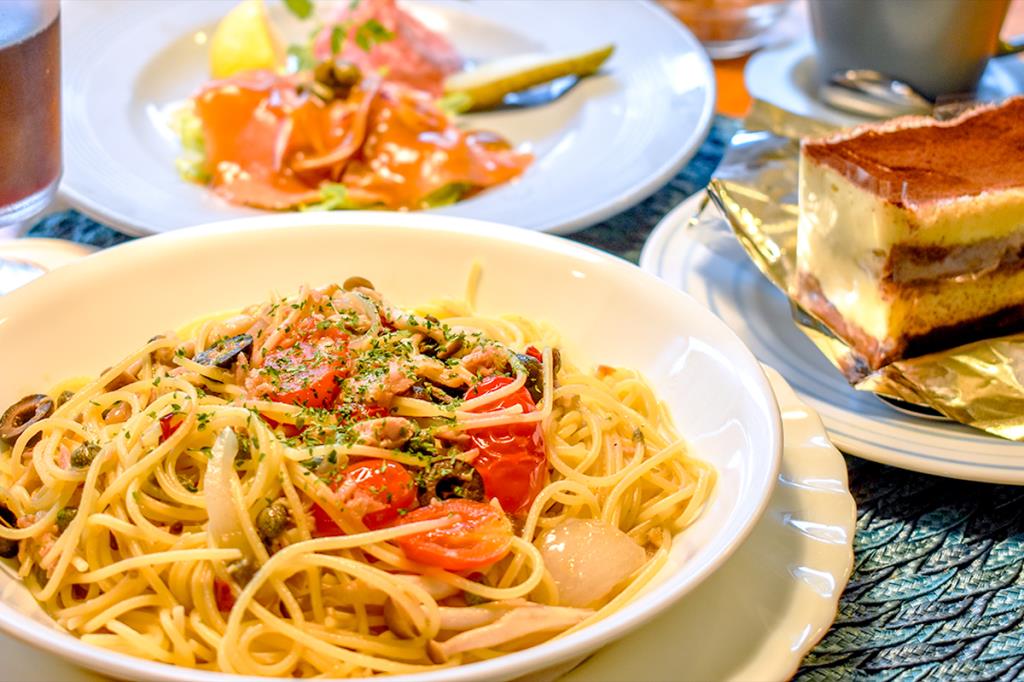 ・パスタ 1,000円~ ・ピザ 900円~ ・前菜 600円~ ・ケーキ 400円~ ・コーヒー 250円 ※全て税込 |