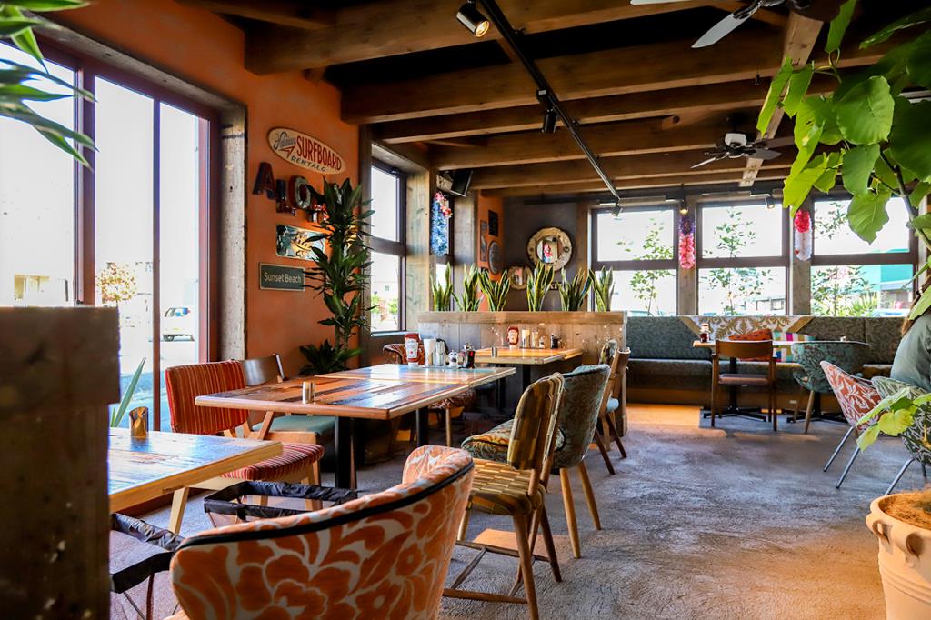 「いちばん近いハワイの食卓」をコンセプトにしたハワイアンパンケーキカフェ・Kona’s Coffeeが山梨初出店!店内はハワイのローカルリビングをイメージ。