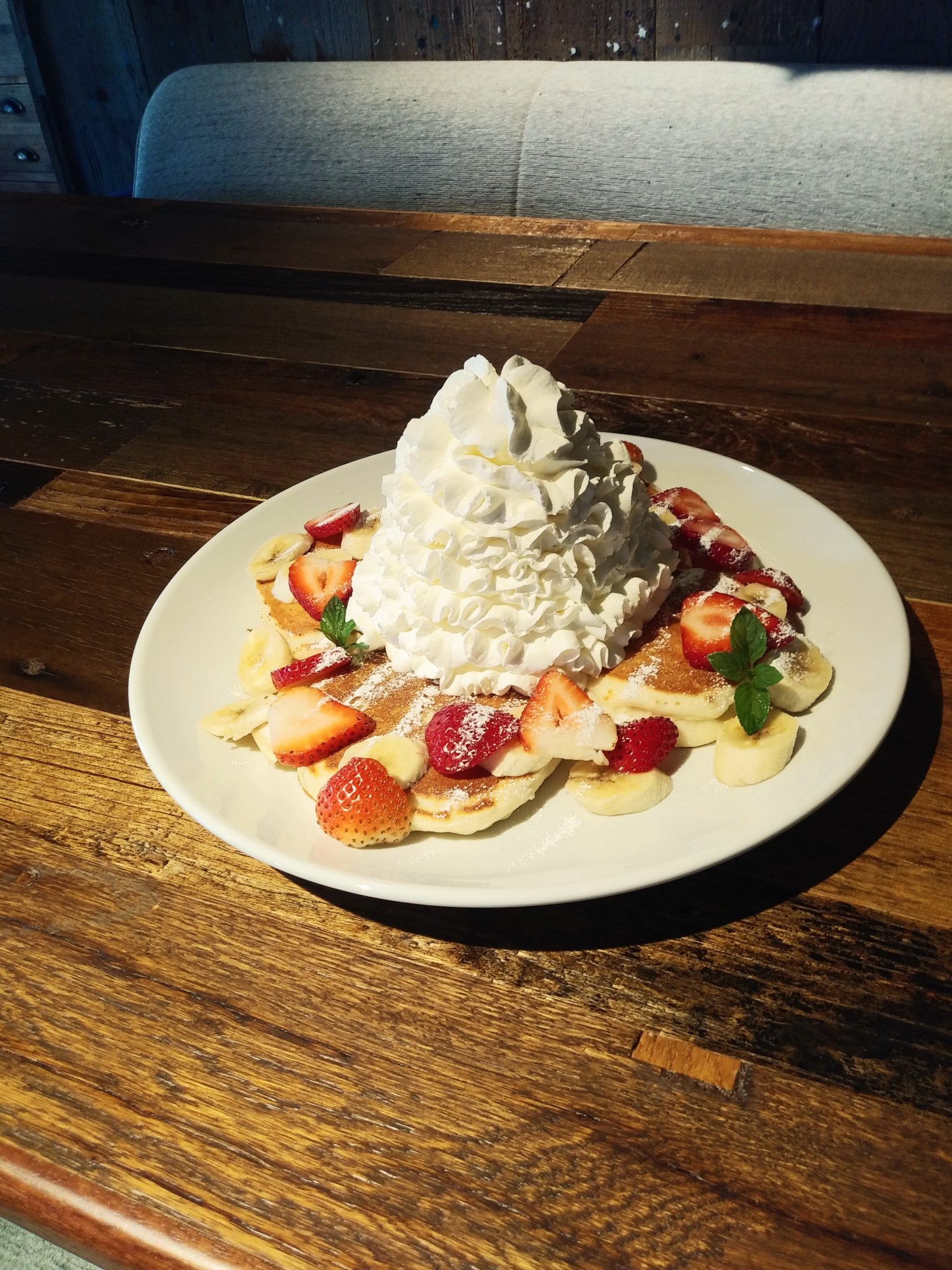 ここのお店のパンケーキは、ふわふわでおいしいですし、