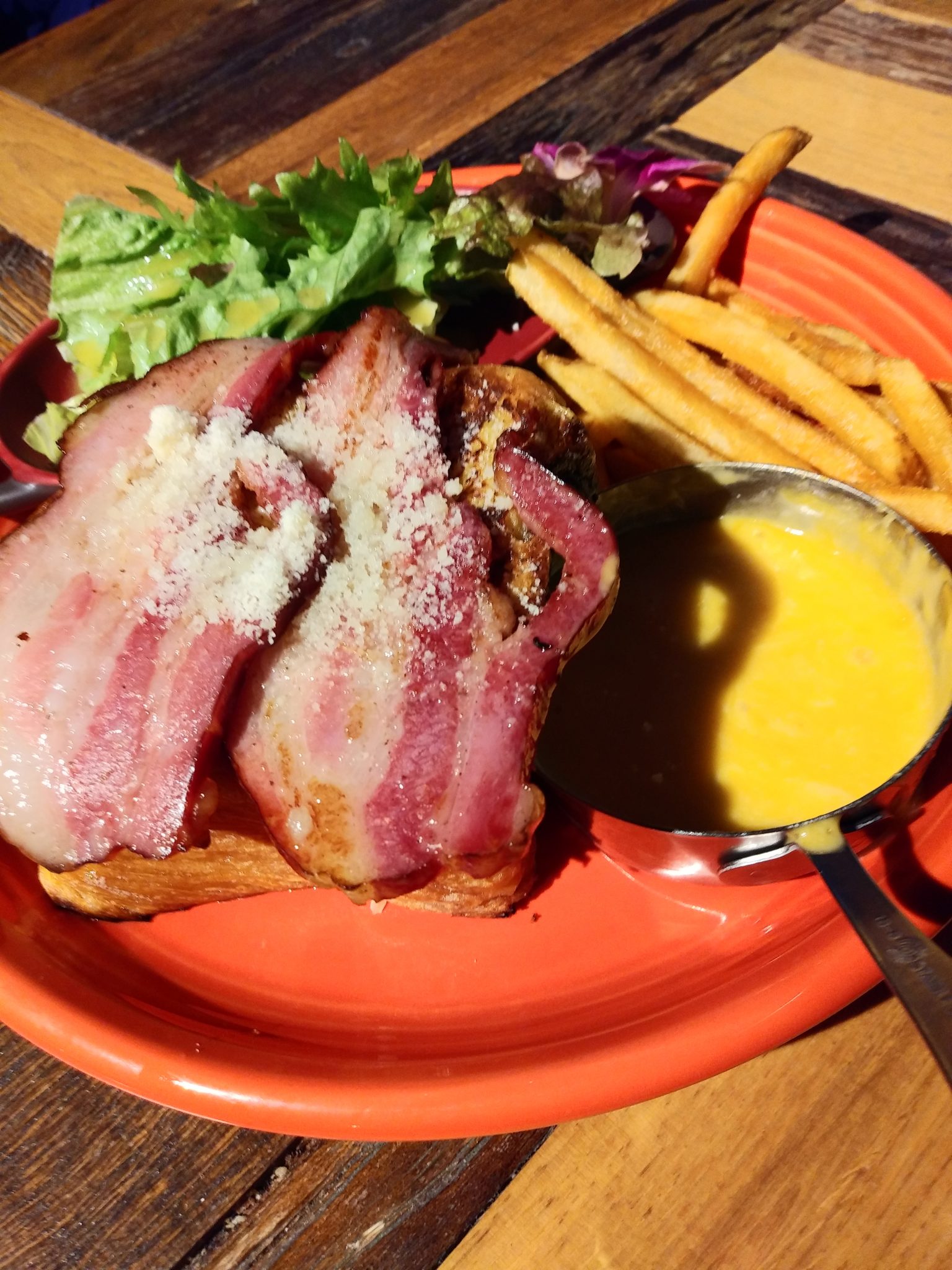 コナズ珈琲と言えば、生クリームたっぷりのパンケーキのイメージですが、1月25日までの期間限定でフレンチトーストがありました。食べてみたくて、慌てて来店しました。デニッシュ生地のパンを使用していて、甘味がありました。ふんわりやわらかいパン生地、ベーコン、チーズソースで頂くフレンチトーストは美味しかったです。添えられたポテトもカリカリ食感で美味しかったです。