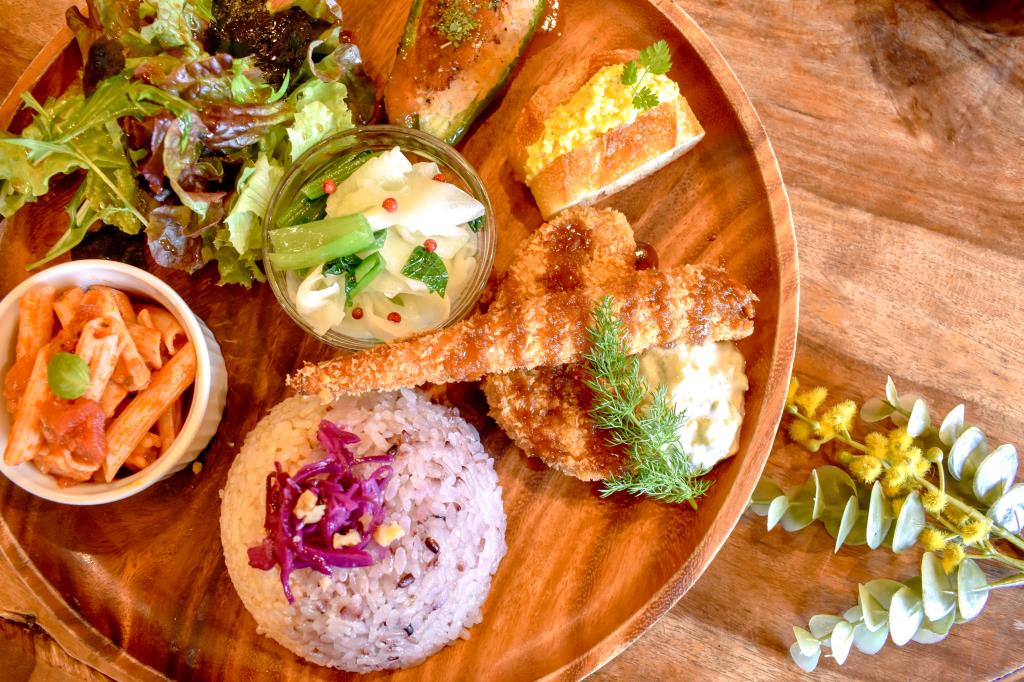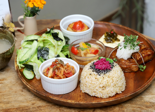 彩り豊かな穀物菜食のベジプレートが大人気の「大北農園」直営カフェ。桃が旬の時期には、低農薬・有…