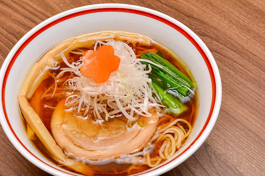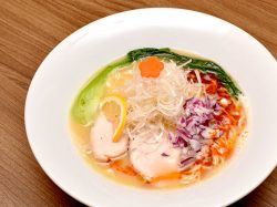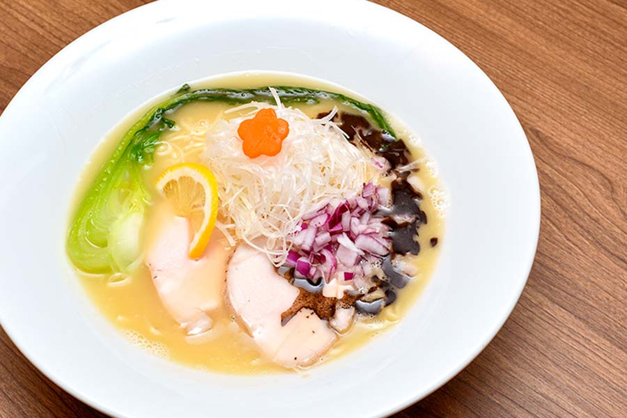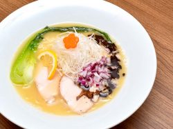 トッピングには鶏むね肉のチャーシューのほか、季節の野菜を使って、彩りも豊かに。女性ならではの繊細で上品な味わいで、罪悪感のないヘルシーなラーメンを堪能しよう。