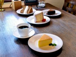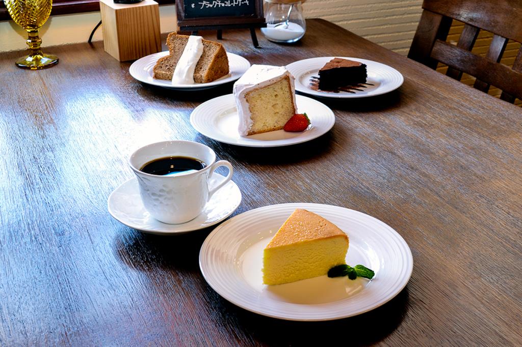 カフェタイムはアメリカンケーキがオススメ!一番人気のニューヨークチーズケーキに、エンゼルフード、ブラックチョコレートケーキなど、アメリカンケーキにこだわっているので濃厚な味わい。