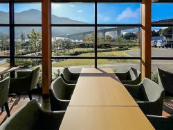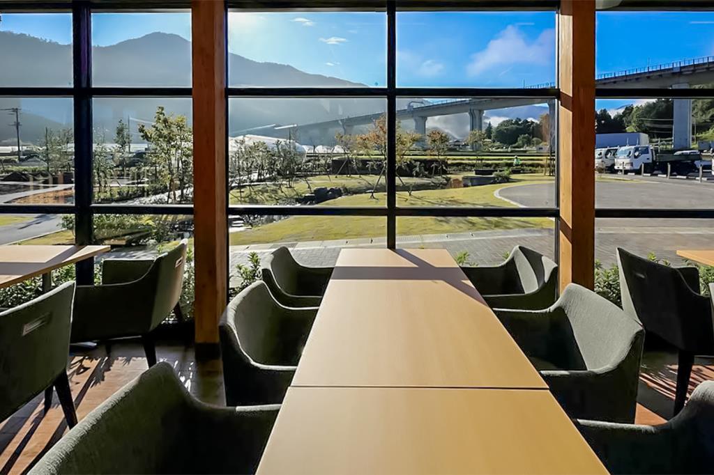 富士湧水ポークや都留の自然薯・地元野菜など地産地消にこだわったメニューが中心のお店。解放感ある大きな窓のある店内と、風を感じる事が出来るテラス席がある。